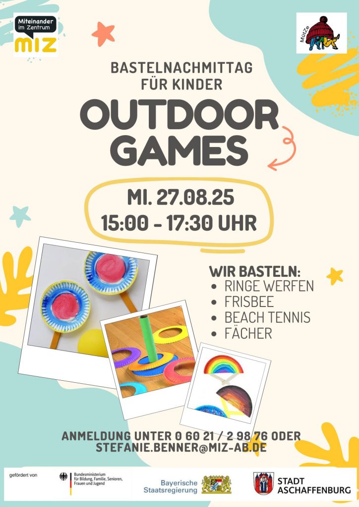 Wir veranstalten einen Bastelnachmittag für Kinder zum Thema „Outdoor Games“!
