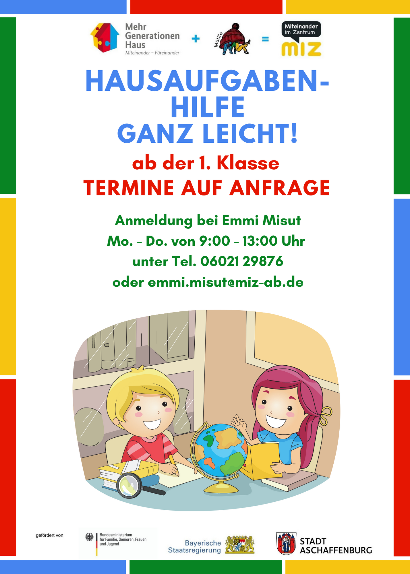 Hausaufgabenhilfe MIZ Mitarbeiter2021-05-19T10:50:26+02:00 Beitrag teilen FacebookXLinkedInWhatsAppE-Mail